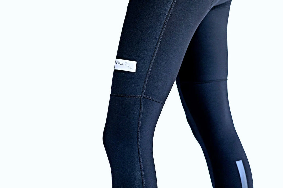 The tights use a C0 Durable Water Repellency (DWR) treatment to repel road spray and showers, feature reflective trim configured to be visible to oncoming traffic and from behind, and use the same Elastic Interface pad for long distance riding that features across the Albion range.