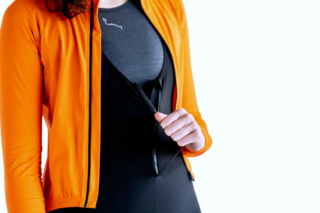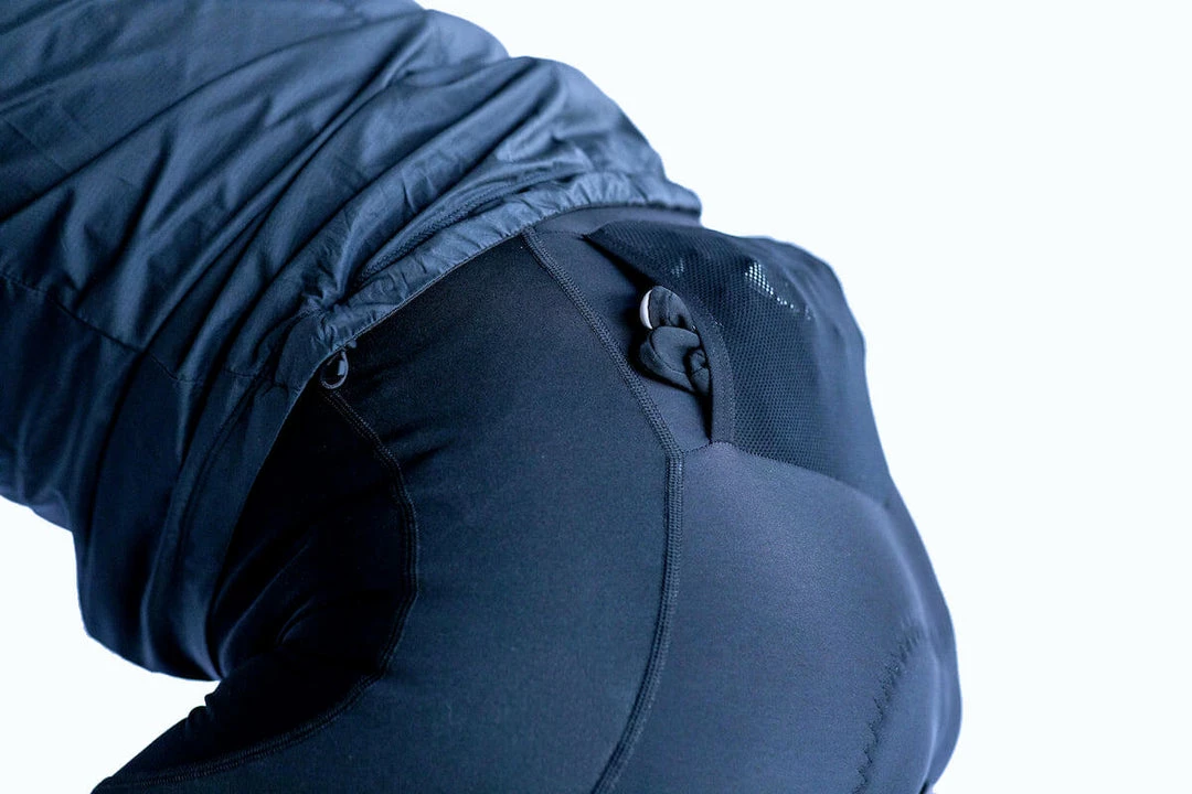 Three premium Italian brushed back fabrics are combined in an engineered panel construction to optimise protection against cold airflow around the legs and back when riding, with a zippable upper section featuring a mesh back panel providing additional upper body warmth and comfort.