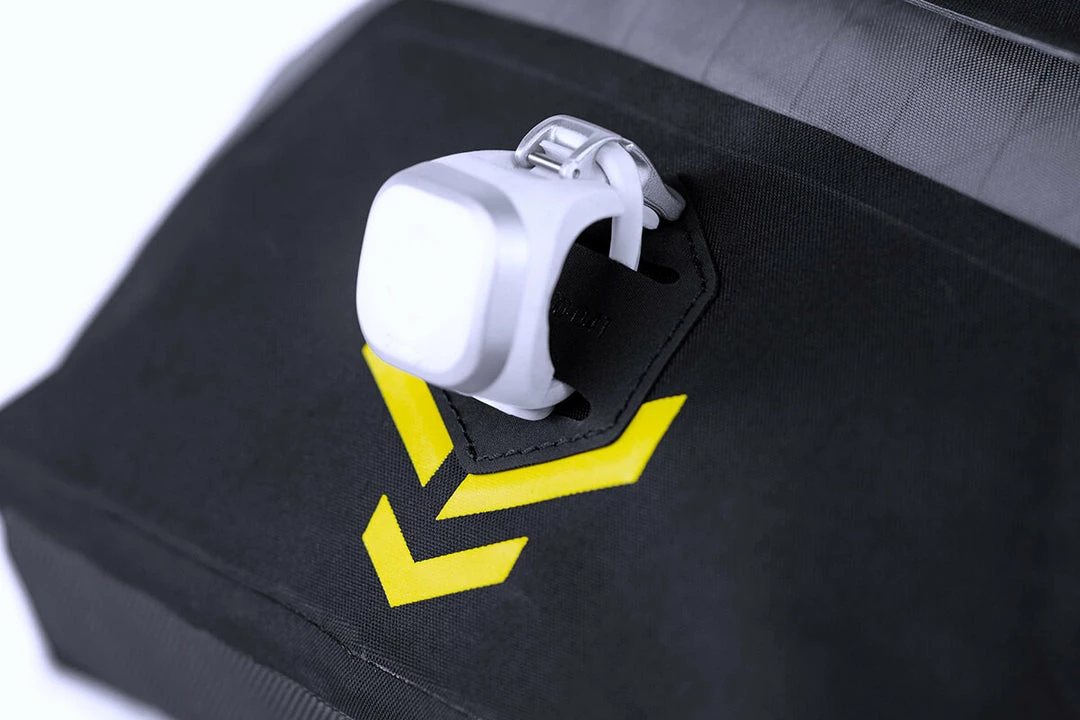 Weighing only 155 grams, the Pocket keeps favourite snacks, a phone, or a small camera within arm’s reach. A Velcro closure provides easy access, while an internal anti-rattle mesh pocket keeps contents secure. A reflective design and a light attachment help to increase visibility in low light.