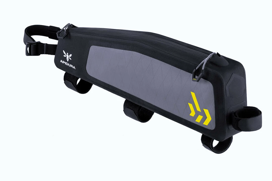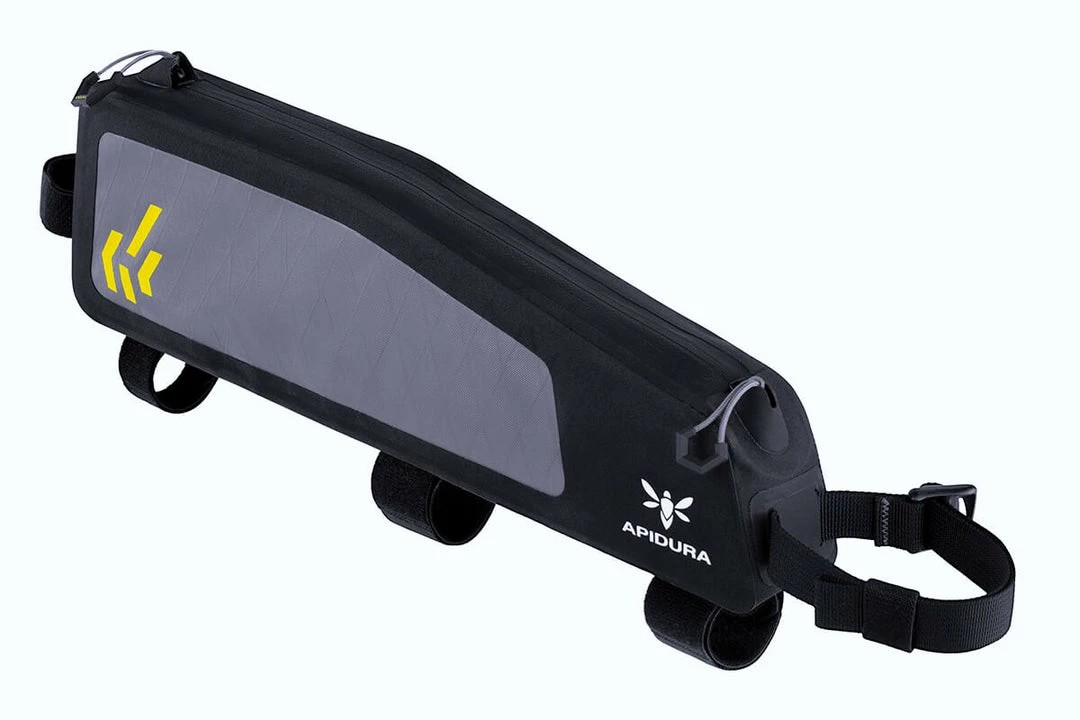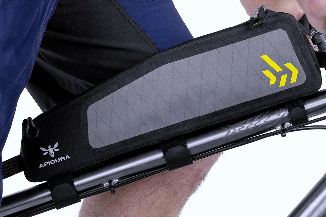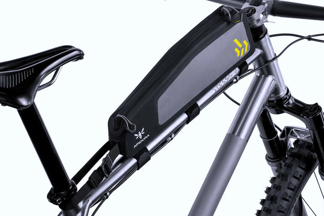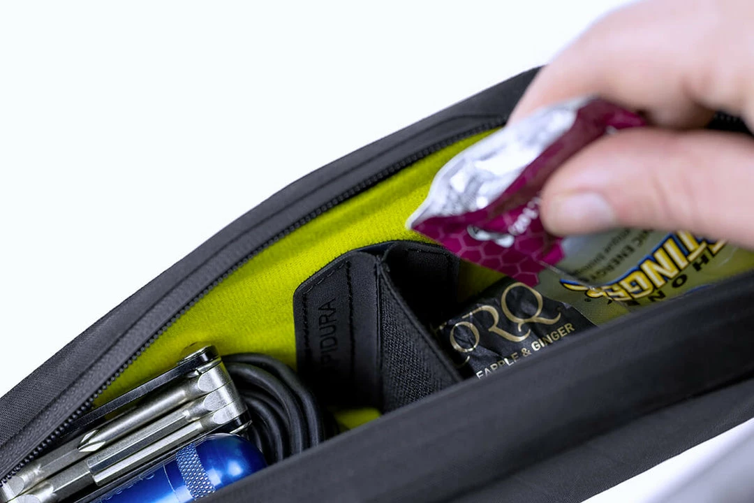 The Backcountry Long Top Tube Pack is a convenient space to store frequently used items, particularly on mountain bikes with sloping top tubes or limited space inside the main frame triangle.