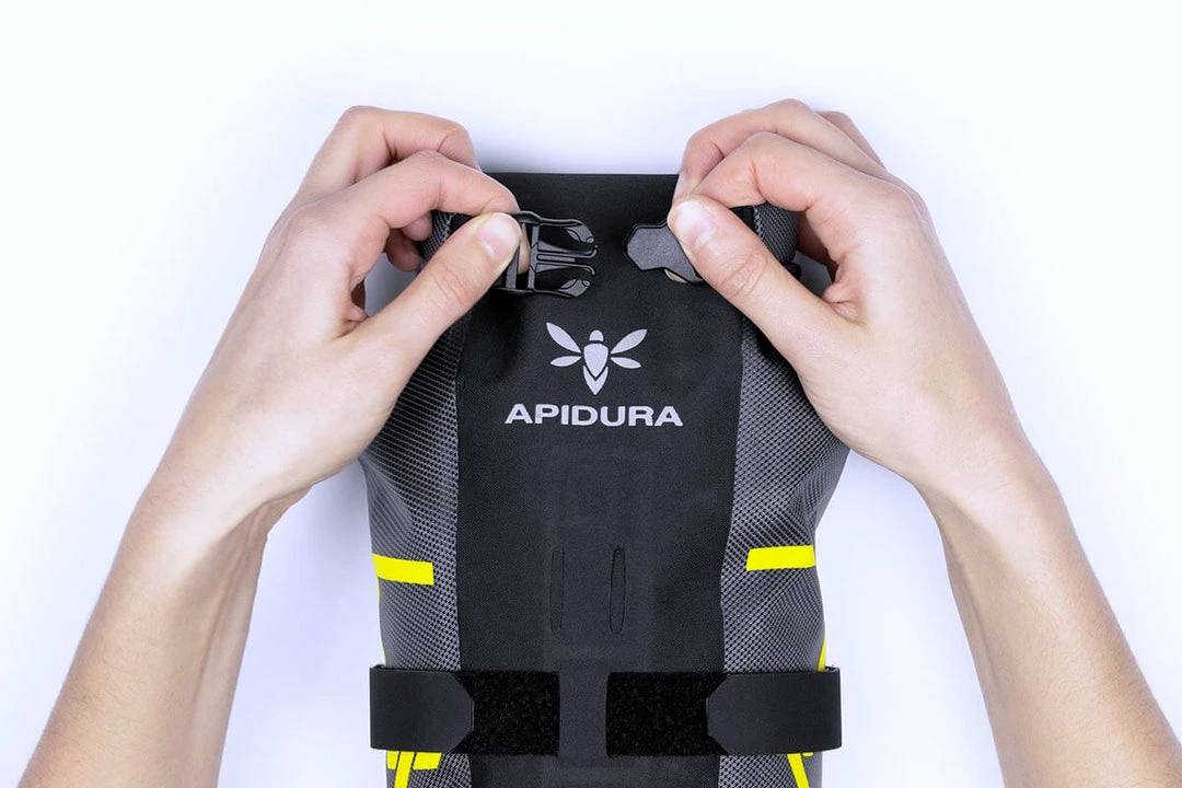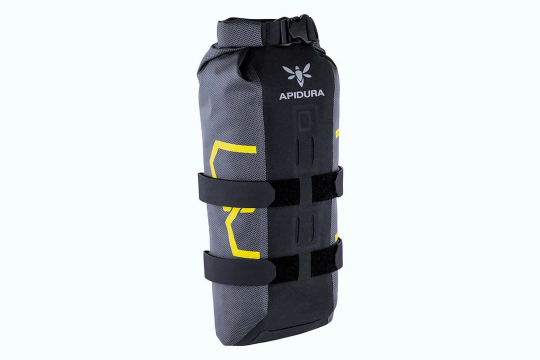The attachment mechanism, unique to Apidura, ensures that the straps do not wrap around the fork itself. This makes removal and attachment far easier, and allows for access to contents without removal. Multiple attachment loops and the ability to cut down straps ensures that the Pack can be fitted to any fork cage (not included).