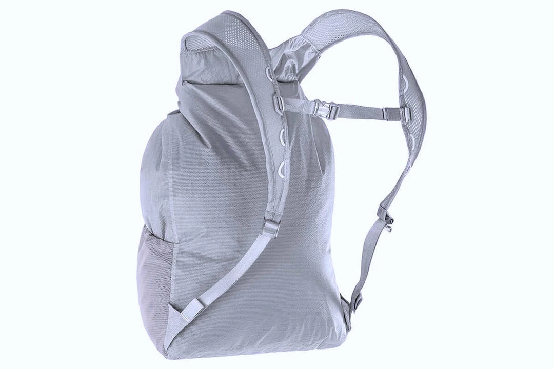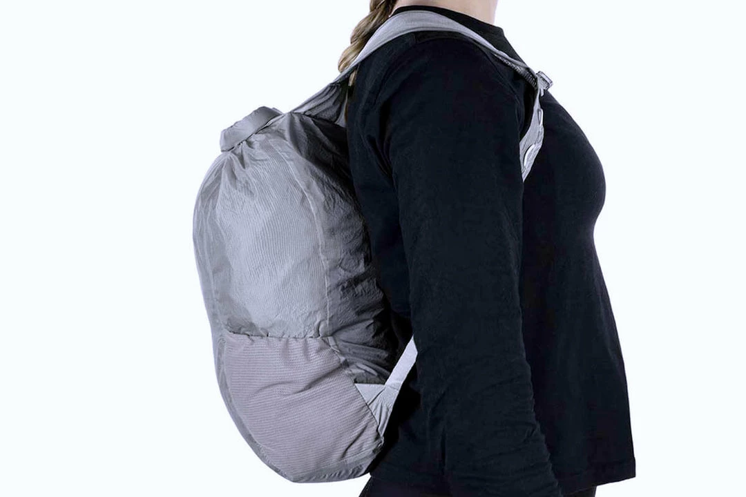 The Packable Backpack is unisex and one-size-fits-all, with adjustable sternum straps. A roll-top closure allows the bag to accommodate loads of varying sizes and the rear of the pack features reflective details for enhanced visibility at night.