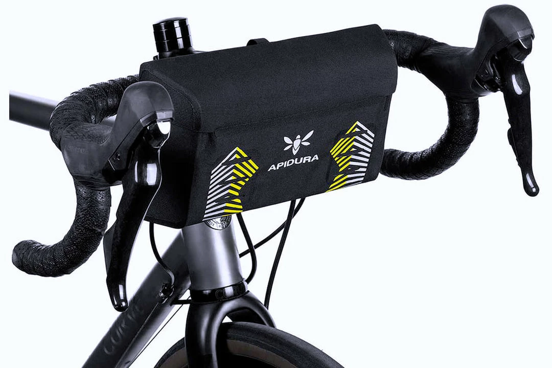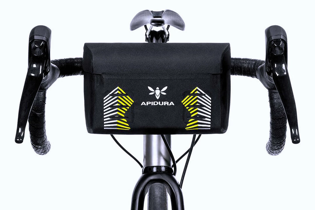 The Pack is built from Hexalon, an ultralight laminate designed specifically for Apidura. It attaches via reinforced lightweight velcro straps and optional EVA foam spacers that are designed to work well with drop, flare and flat handlebars.