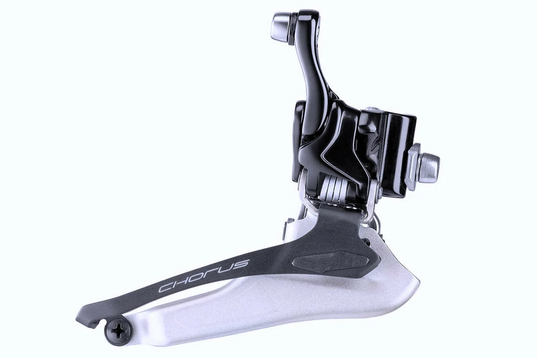The precise, extremely fluid movement of the front derailleur is achieved in part thanks to the new cables and their housing and in part because of the design and construction of the 2×12-speed front derailleur. The new Chorus derailleur incorporates the same design that separates the upper from the lower semi-rod, eliminating the free stroke for more immediate, responsive upshifting. Design of the 2×12 speed front derailleur and its trajectory angle mean wide tires measuring up to 32 mm can be used, while the new design of the cage and dedicated positions for each gear position ensure extremely precise and fluid derailleur performance.