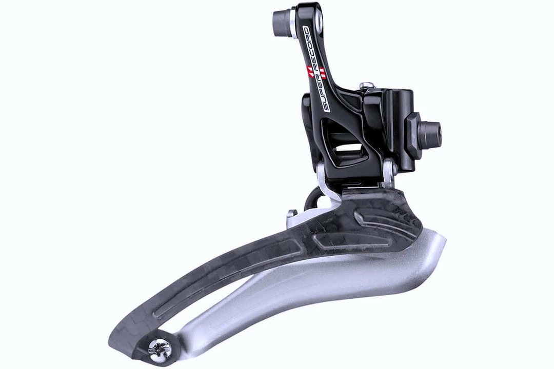 Absolutely unrivalled precision and speed, the Campagnolo Super Record front derailleur, with Ultra Shift geometries combined with the Campagnolo chainset and chain, guarantees the best of shifting performance under any condition.