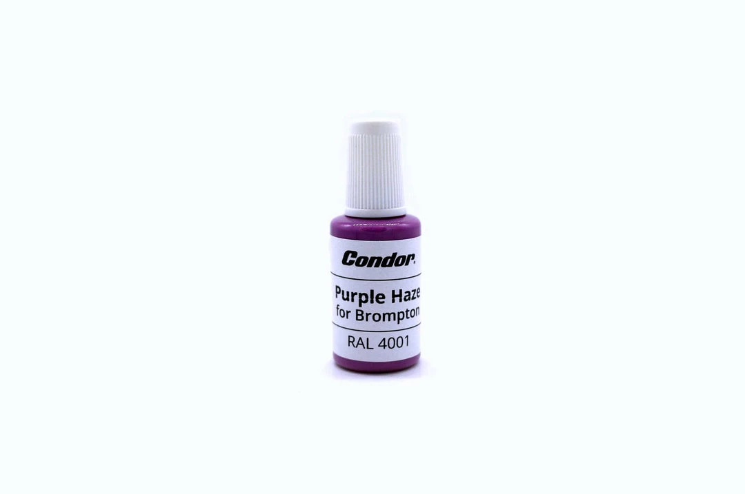 Condor Touch Up Paint for Brompton has been specially formulated for Brompton colours. Featuring an integrated brush, it is easy to repair chipped or scuffed paint. Our touch up paint can be applied without a primer and dries in 2 hours.