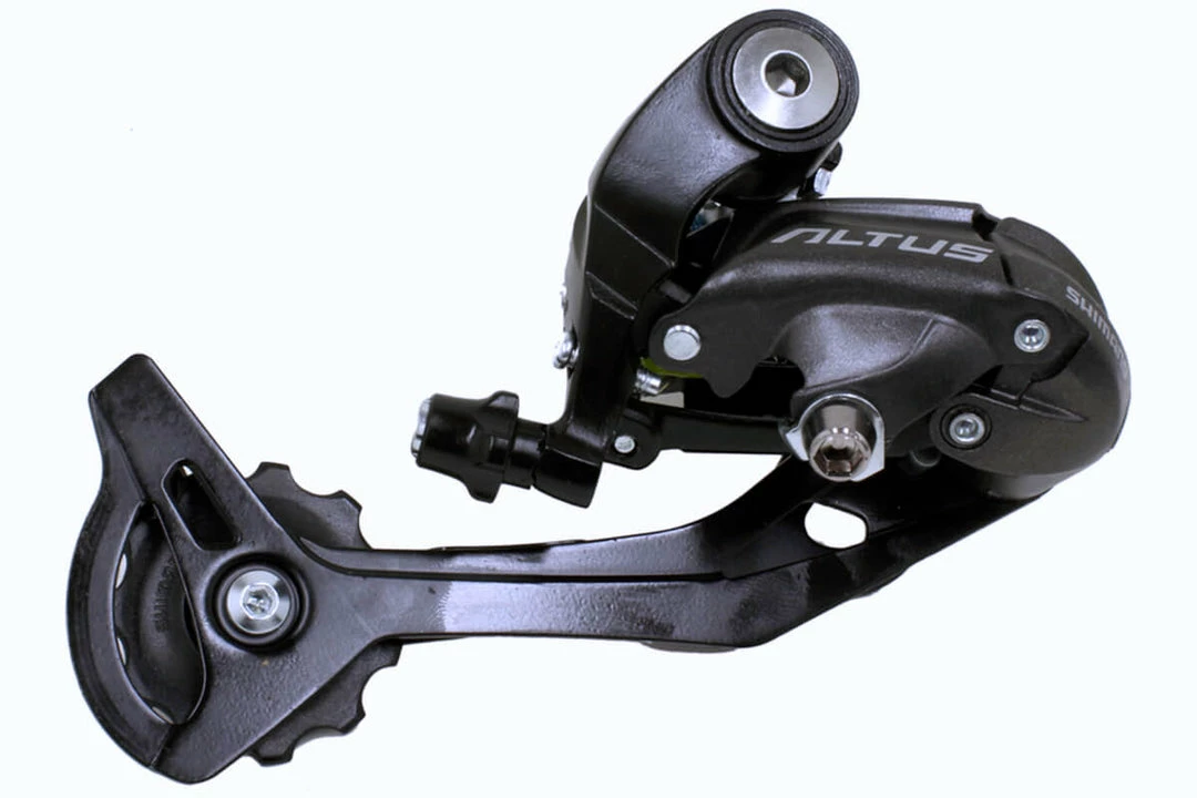 Great value Altus rear derailleur offering crisp performance on and off the road. For use with 9-speed drivetrains. Advanced light action design, with low friction fluorine coated link pivot bushings. 11-tooth pulleys for reduced pulley wear and chain noise.