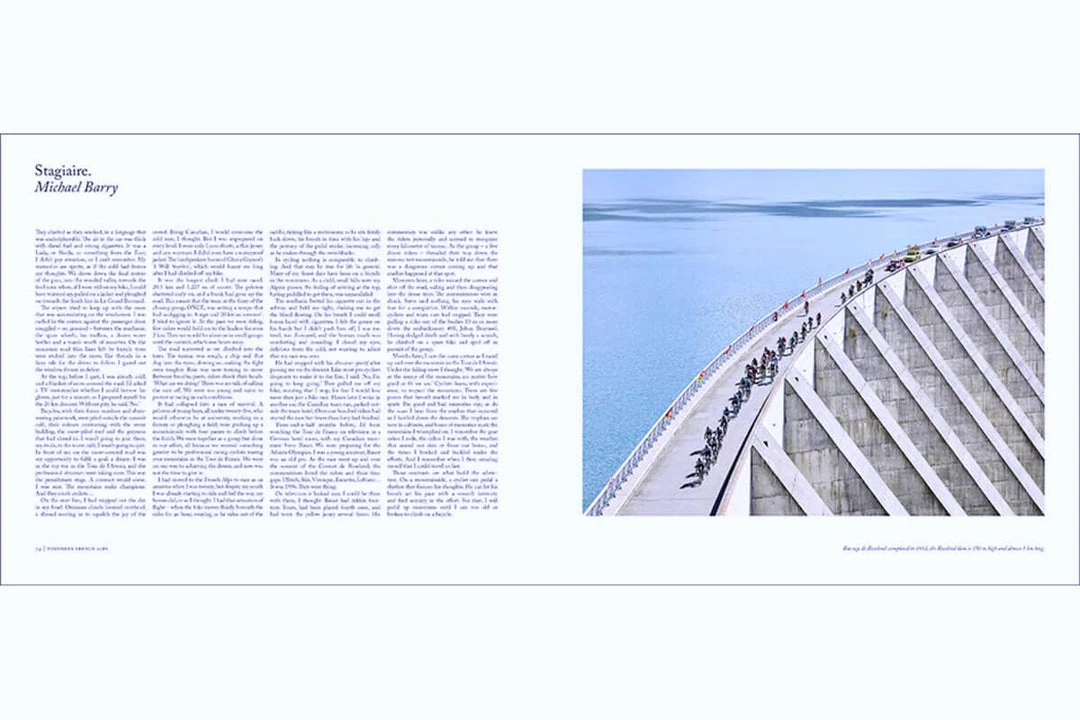 In recent years, as cycling’s popularity has changed our cities, made us more active and taken us down less-travelled roads, the mountains of Europe have become the primary destination for everyday riders who want to challenge themselves, experience the storied roads and escape their everyday lives. This publication is aimed at all who wish to be inspired by those challenges or celebrate those personal victories. With tributes and personal recollections from leading road cyclists, the photographs and words coalesce into a visual depiction that transcends any single perspective and will inspire awe and wonder in anyone who wishes to confront the power of the mountains.