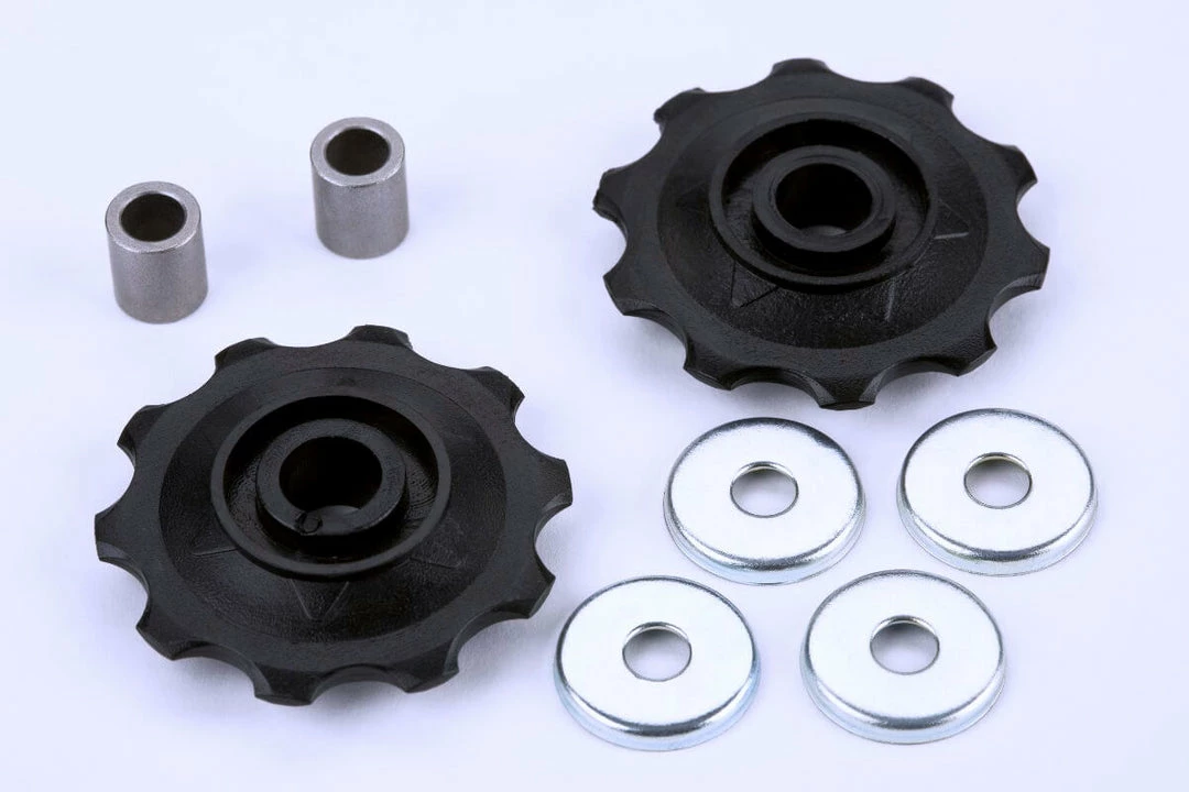 Pair of genuine replacement chain tensioner idlers (jockey wheels) and fittings for non-derailleur Brompton bikes (1- and 3-speed).