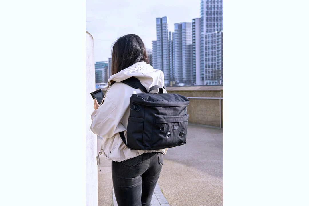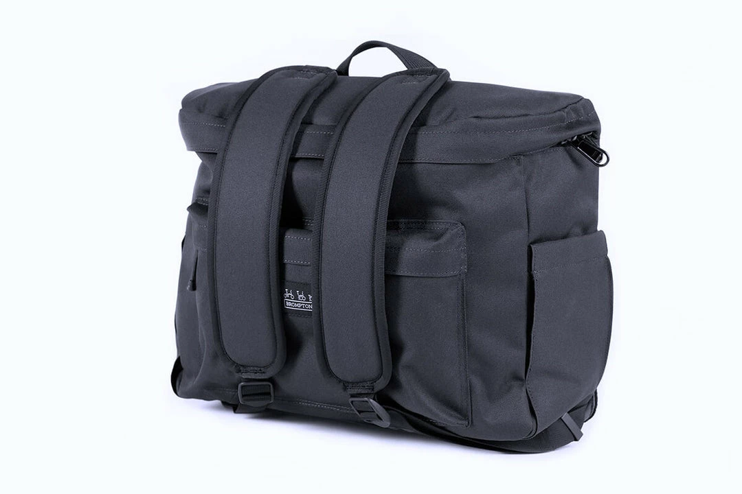 The first backpack designed to work with the Brompton front luggage system, leaving you with free hands for your bike and anything else during your commute. Made from a recycled polyester yarn, with a padded air mesh rear panel. This bag features two expandable side pockets and a smart magnetic snap system to keep straps safely in place whilst riding. An ideal bag for journeys that include a number of off bike sections or for those that prefer to spread the load across two shoulders.