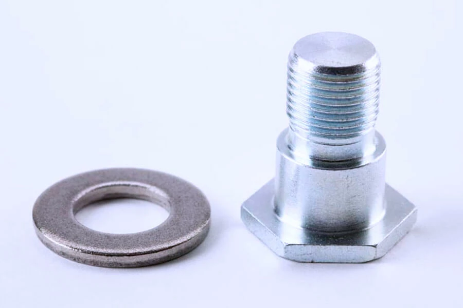 Replacement folding pedal axle/bolt with left hand thread (steel). Please note: washer is not included.