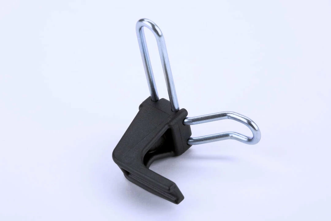 Replacement front axle hook including fittings for E version Bromptons (without rack or mudguards).