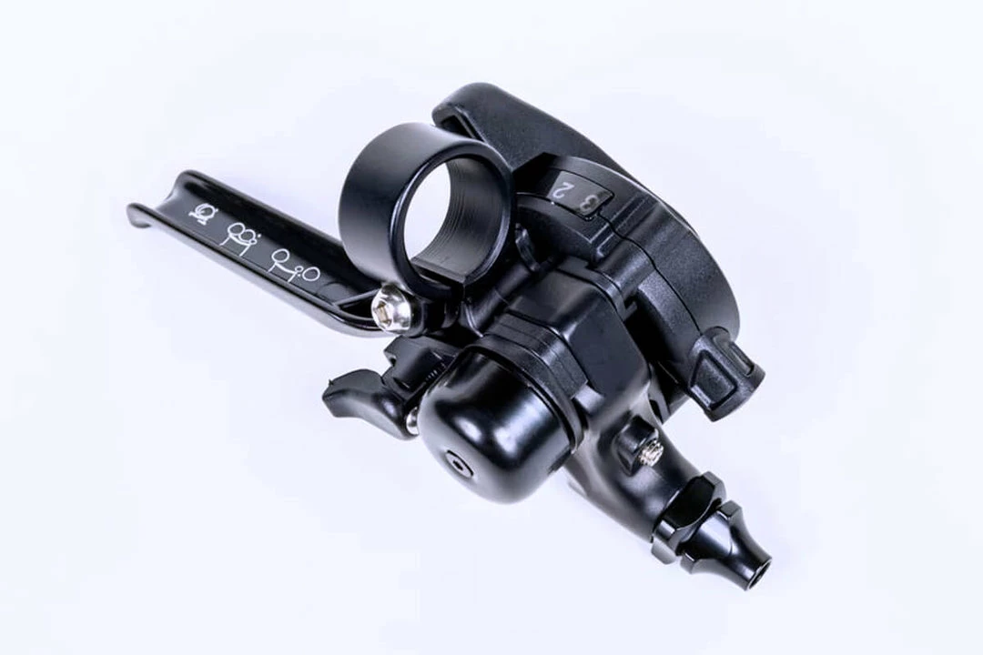 The all new gear shifter for the hub gear (right-hand-side), with integrated brake lever.