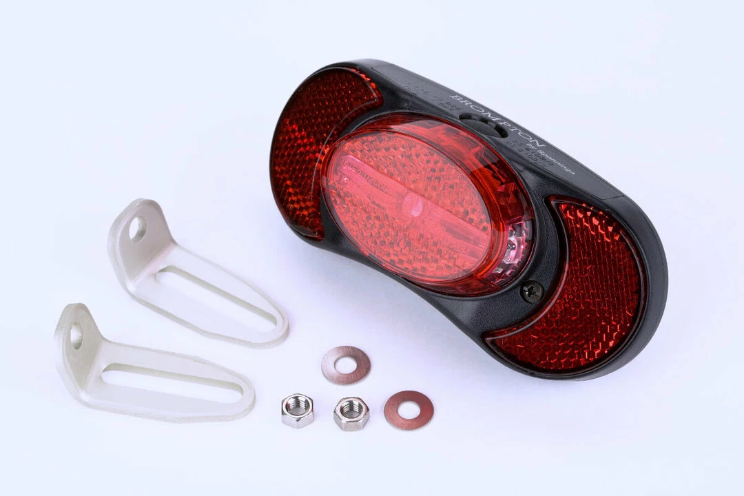 Replacement brackets for reflectors or a rear lamp to fit version R (bikes with rack) Bromptons.
