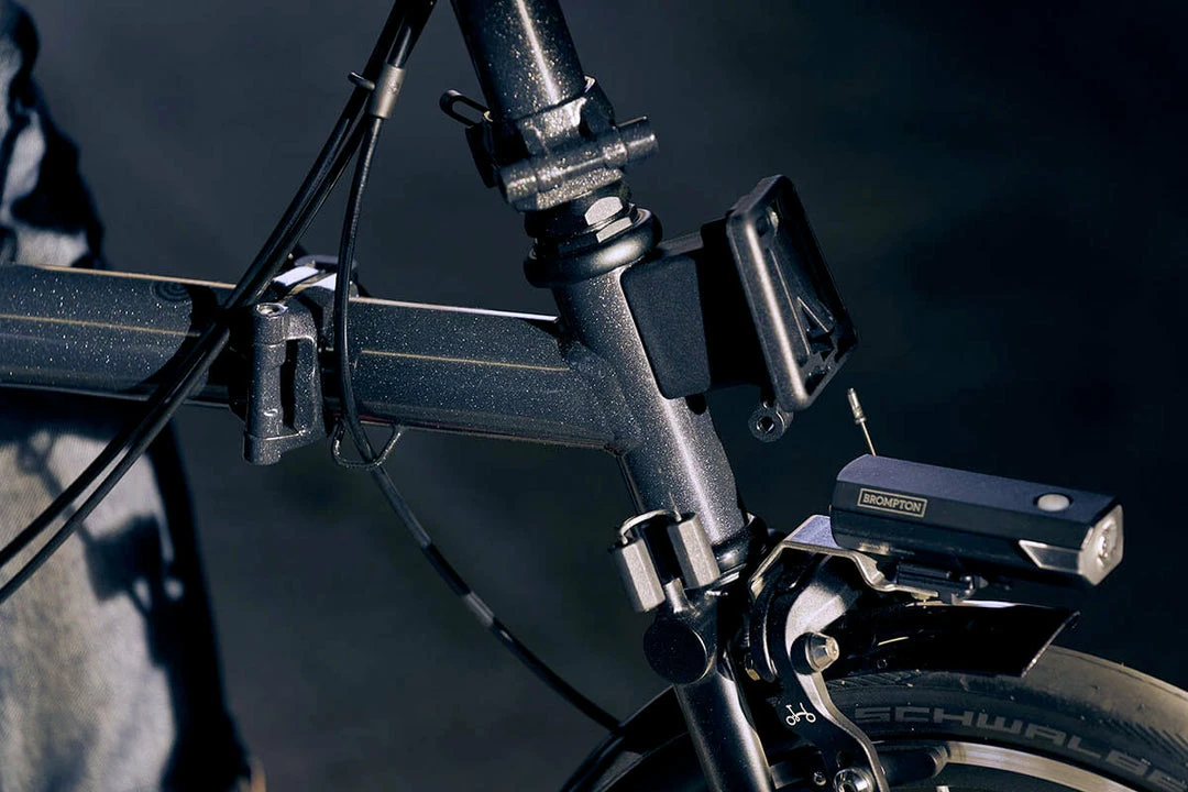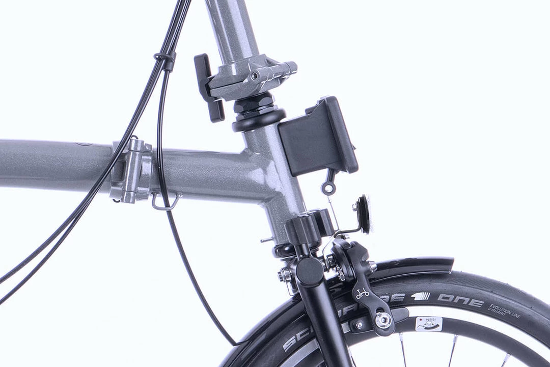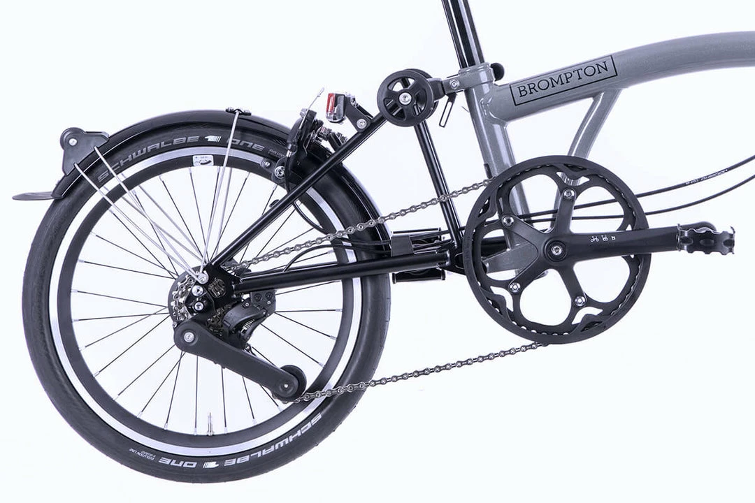 Our Brompton P Line bikes are fitted with front carrier block, reflectors, mudguards and Continental Contact Urban tyres