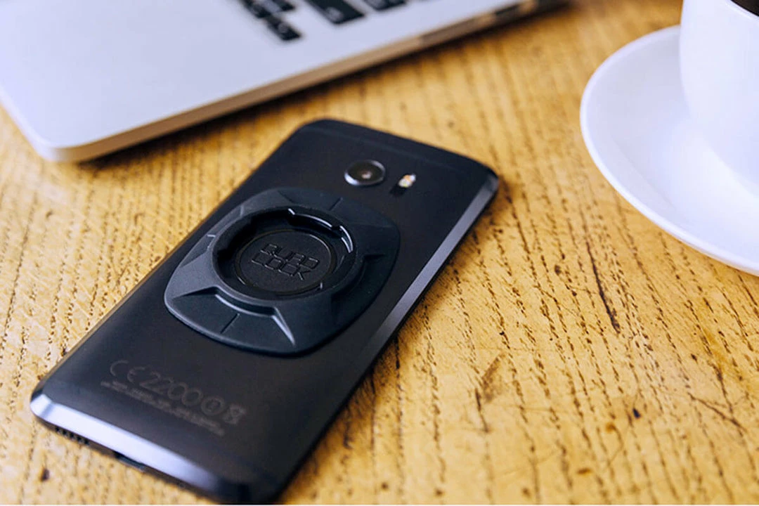 Mounted in the centre of the handlebars over the stem; the phone mount is Brompton designed and compatible with all current handlebar types. Made in robust nylon for a sleek black look which is unobtrusive on the bike. The Patented Dual-Stage Lock makes it quick & easy to attach / detach your device, whilst giving you the peace of mind to know your device is securely locked. At just 4.5mm thick, the Quad Lock® Universal Adaptor fits seamlessly onto the back of smartphones and cases.