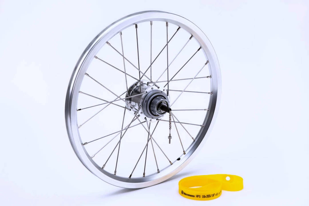 Genuine replacement rear wheel for 6 speed Bromptons. All fittings are included.