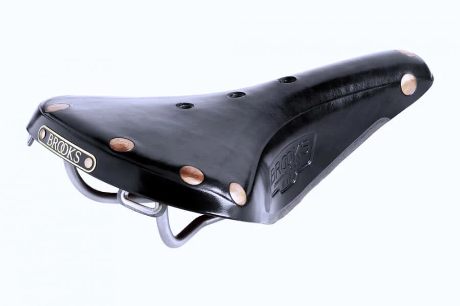 The Brook’s B17 saddle has been on the market for over 100 years, being featured in as early as the 1898 catalogue . The model is available for gents and ladies: the B17 (gents) and B17 S (ladies). The B17 Titanium features copper plated steel metalwork and titanium rails.