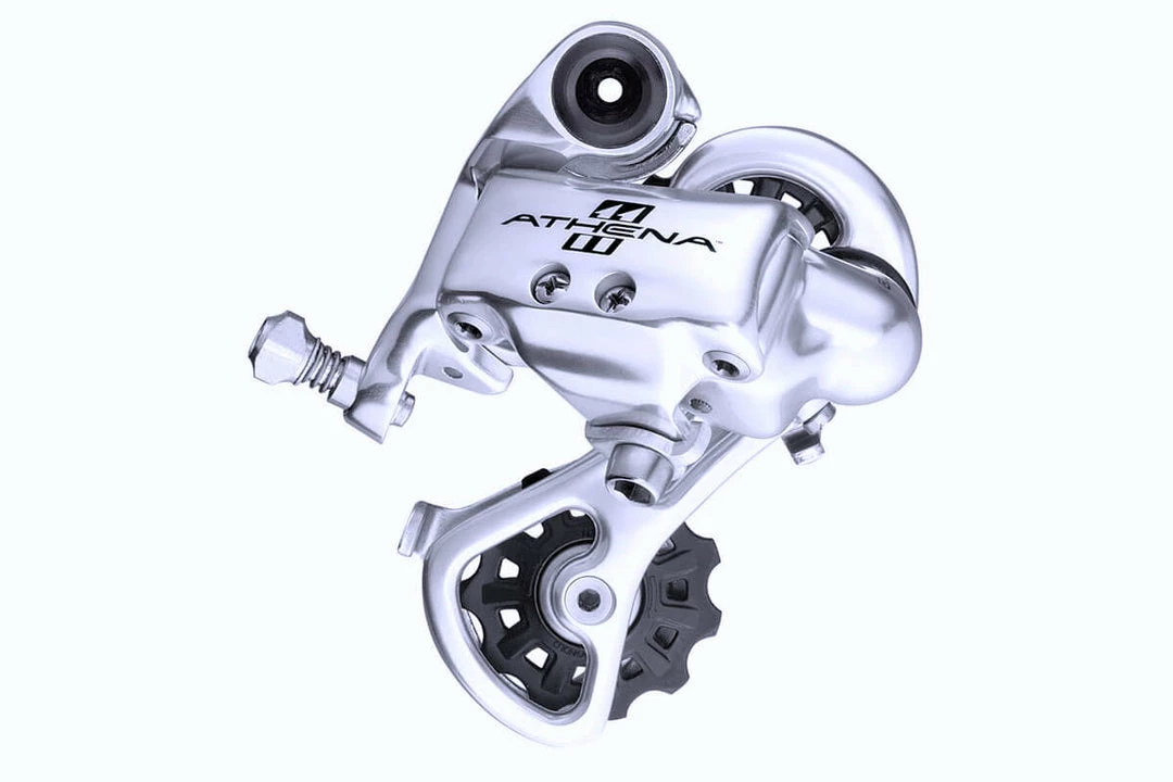 The Athena rear derailleur has the same geometry as the top-of-the-range 11x models, and absolute precision is the result. The outer plate wraps around the upper and lower bodies in aluminium, eliminating any possible play and making the overall structure of the rear derailleur extremely stiff. The result is fast and precise shifting in all the gears. The pulleys are specially designed to reduce vibrations and make the drivetrain perfectly quiet.