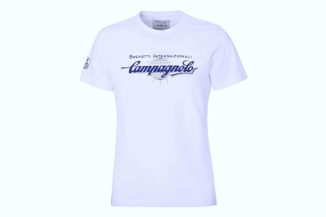 The Campagnolo Brevetti Internazionali T-shirt is an icon jersey and one of its kind. The Campagnolo Brevetti Internazionali logo embodies the essence of Campagnolo history and legend.