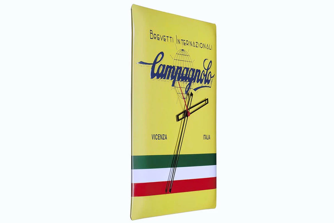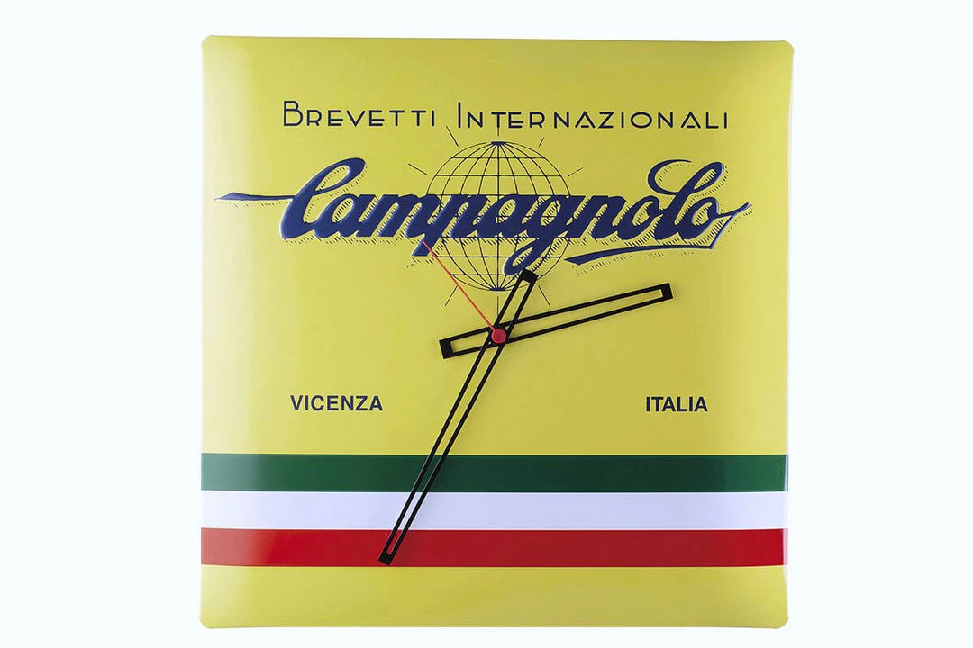 Characterised by the yellow colour, a symbol of many victories at the Tour de France, the Wall Clock Brevetti Internazionali furnishes your home or office with style. The Campagnolo Brevetti Internazionali logo together with the Italian flag stripes, represents the identity of Campagnolo. This elegant Campagnolo wall clock is in metal with a relief finish that gives it an innovative 3D effect.