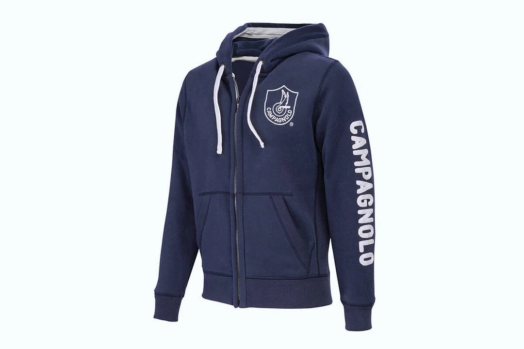 The Campagnolo premium hooded sweatshirt is both warm and thick enough to double as a jacket, yet versatile enough to use in any setting thanks to both its extremely soft fabrics and sturdy zipper.