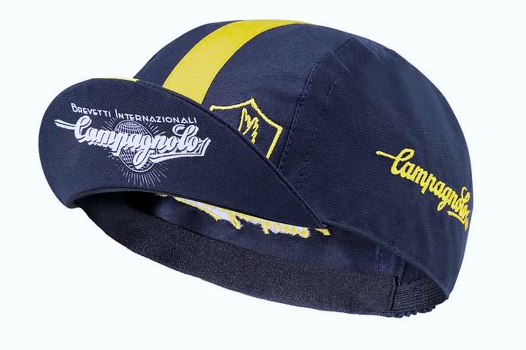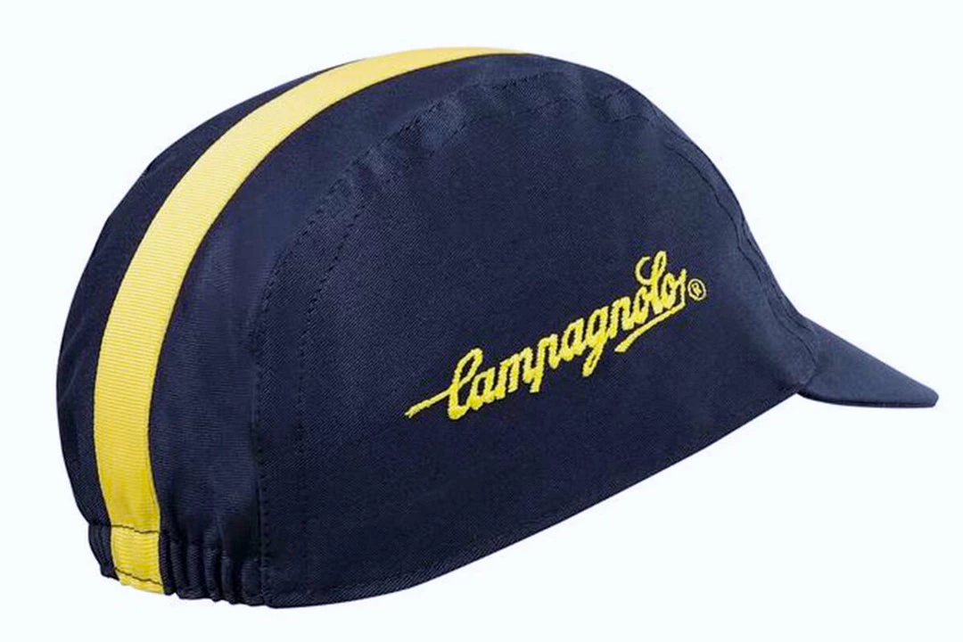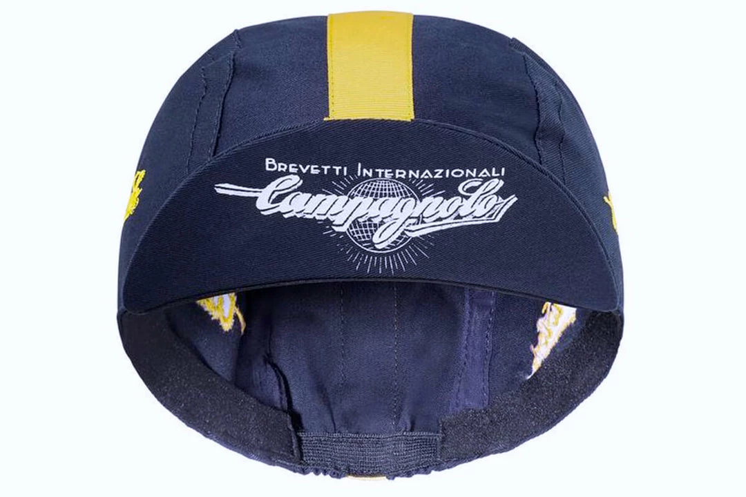 No component manufacturer has accompanied more athletes through the demanding roads of France to end up in yellow along the Champs Elysee. The TOUR colorway of the Classic Campagnolo Cycling Cap matches a dark and elegant Campagnolo blue to the immediately recognizable yellow of cycling’s most famous stage race to celebrate the Italian company’s incredible palmares.