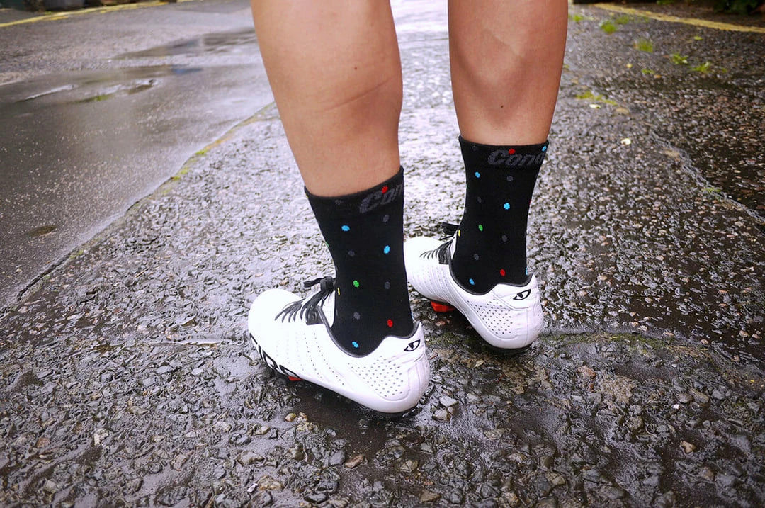 Wrapping your feet in the cozy-warmth of merino wool, the Condor Merino Socks are aptly suited for cranking up chilly alpine passes and riding through transitional seasons. Our sock is great on warmer days too, we use a lightweight knit that wicks moisture and naturally combats odor build-up without being heavy. The taller, 15cm cuff brings extra coverage from brisk mornings and blustery afternoons alike. Using a tight knit weave the material is soft, supportive for an irritation-free fit.
