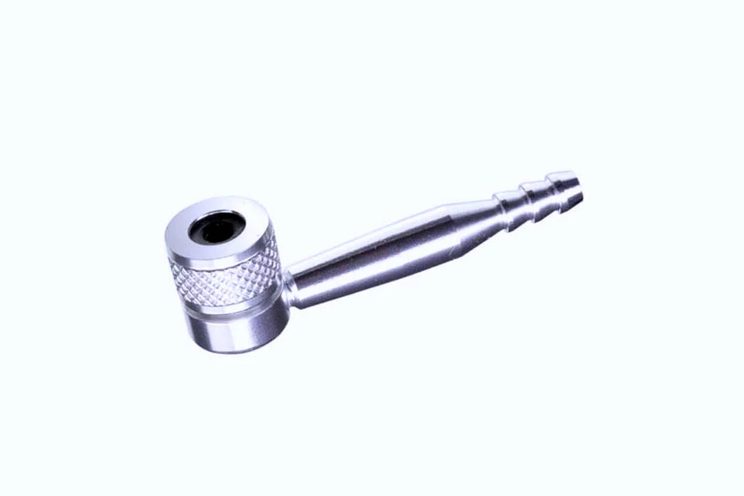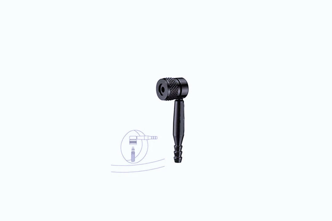 Shaped with the inflator at a right angle, this valve adaptor is specifically designed for us with disc wheels where the clearance to attach a normal pump head is limited.