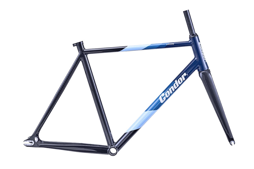 The Lavoro is a well-rounded performance track frame. Custom-butted, superlight aluminium tubing is aggressively shaped for performance on the boards. Welded by hand to obtain maximum structural integrity, the Lavoro is designed to withstand the demands of track racing. Straight bladed tapered carbon forks provide stiffness for pin sharp handling. The Lavoro is an ideal starter track frame that is just as suitable for our pro riders. A proven competition ready machine. Condor Cycles is the official supplier to the London Velodrome and Lee Valley Velopark.