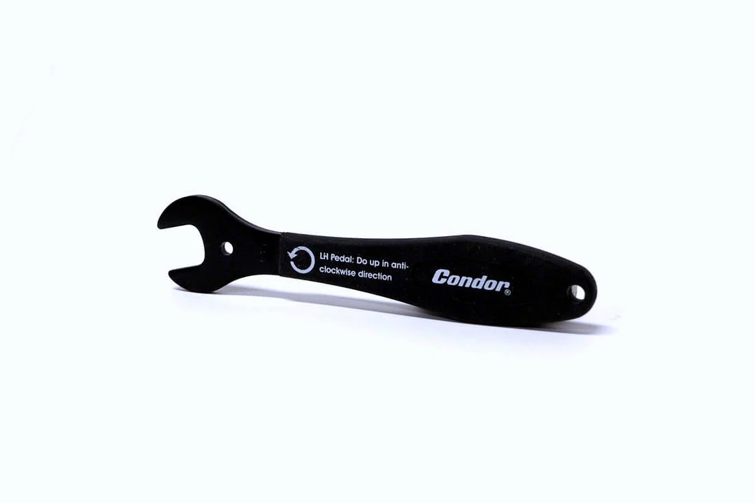 Our mini pedal wrench is perfect for travelling riders. The 15mm spanner makes quick work of removing or fitting pedals. Constructed from heat-treated steel there is a cushioned plastic grip. At 16cm in length it is easy to slot the spanner into a bike bag or mini tool box. The spanner is positioned at 30 degree offset for a better mechanical advantage.