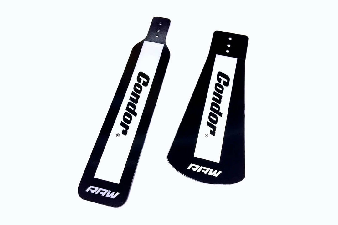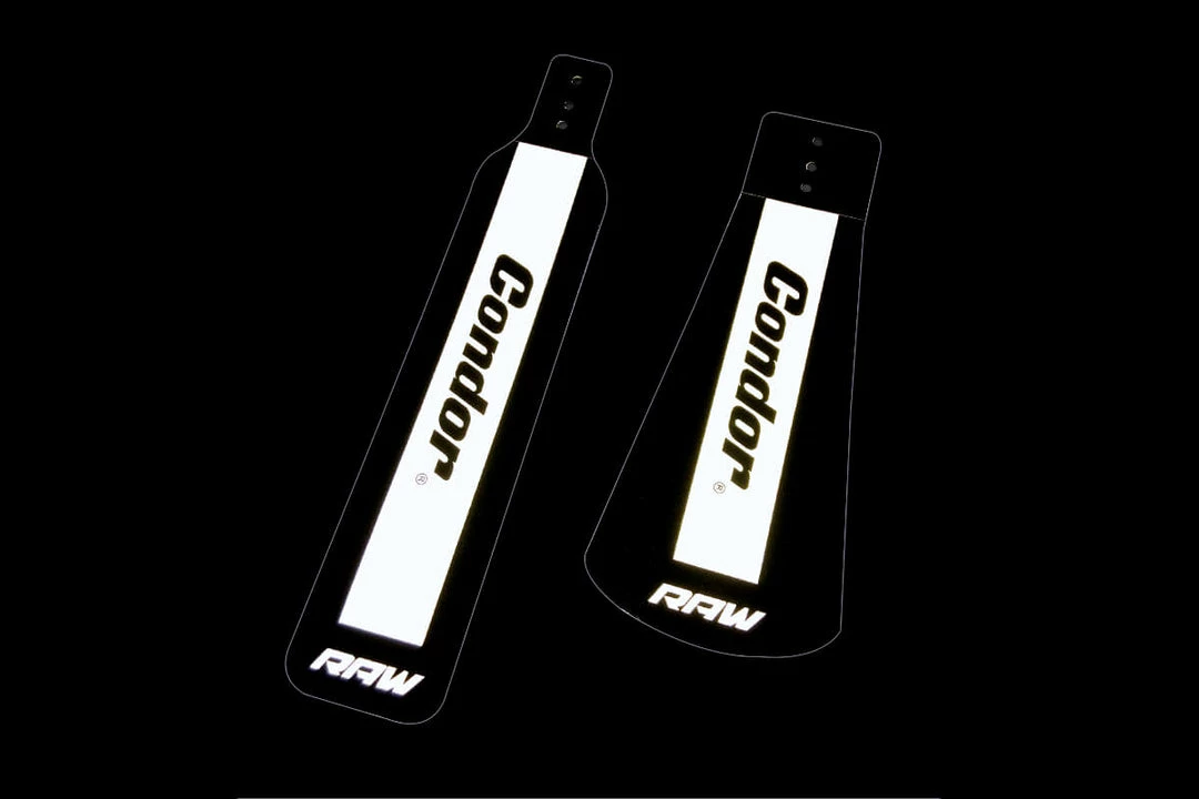 A simple and highly effective addition to all mudguard sets. Mudflaps can make a huge difference to your winter group cycle rides. Most mudguards finish half way down the back wheel, which means you stay dry but spray still hits the rider behind. With a design tested over many winters, RAW mudflaps are made from a flexible plastic that bends without snapping but is durable and rigid enough to keep the spray off riders behind. The mudflaps feature reflective strips for increased visibility in the dark and are ideal replacement flaps for damaged guards.