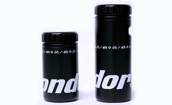 The Condor Storage Bottle, with screw-on lid, is ideal to organise your inner tube, tools, CO2 inflator, etc, and fits neatly into your water bottle cage. A great alternative to a saddle bag and is ideal if you want to avoid blocking your rear light.