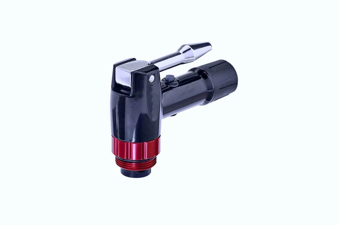 The pump head features red anodised detailing with locking lever to hold it in place on the valve. There is an adjustment button on the head to fine tune the tyre pressure.