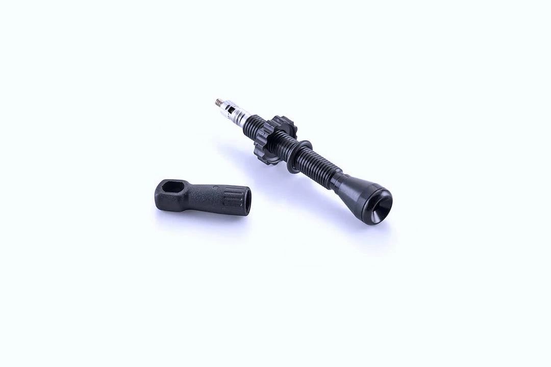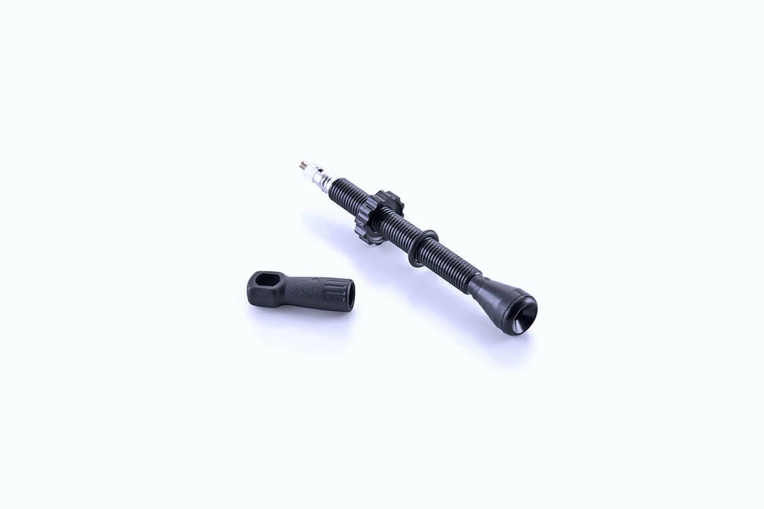 Made from aluminium, Condor tubeless valve are available in 45mm and 60mm length and fit most tubeless rims including carbon, Enduro and DH rims. The large soft rubber base easily creates an airtight seal on valve holes up to 8mm diameter. The integrated valve core remover caps make removing the valve and topping up with sealant a breeze when in the workshop or on the trails.