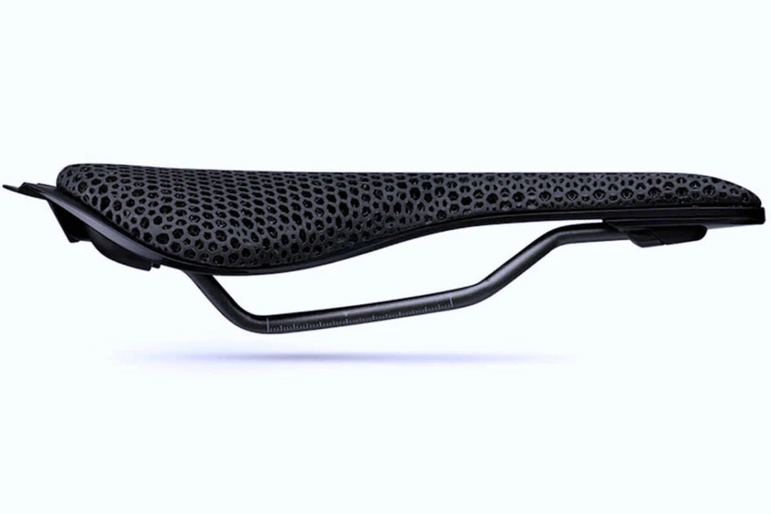 A 3D printed topside offers zonal cushioning areas of honeycomb-like carbon composite material which blend seamlessly into each other so that there is padding where needed without excess elsewhere. This padding sits on a compliant carbon-reinforced nylon shell which can bend and flex for added comfort and there is a full-length relief channel to avoid unnecessary pressure on soft tissue. 7mm Kium rails mean that the saddle doesn’t need a specific seatpost.
