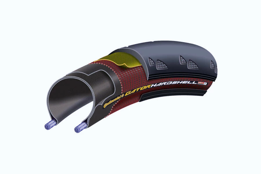 Taking the Gatorskin as their base, they added a third Polyamide layer in the sidewall to make a unique 3-ply casing for the Gator Hardshell. They also added a wider Poly-X anti puncture breaker belt under the tread which extends down into the shoulder area for wider coverage. Add this to the Duraskin anti-tear mesh on the outside of the casing and you are presented with a tougher commuter which is also fast.