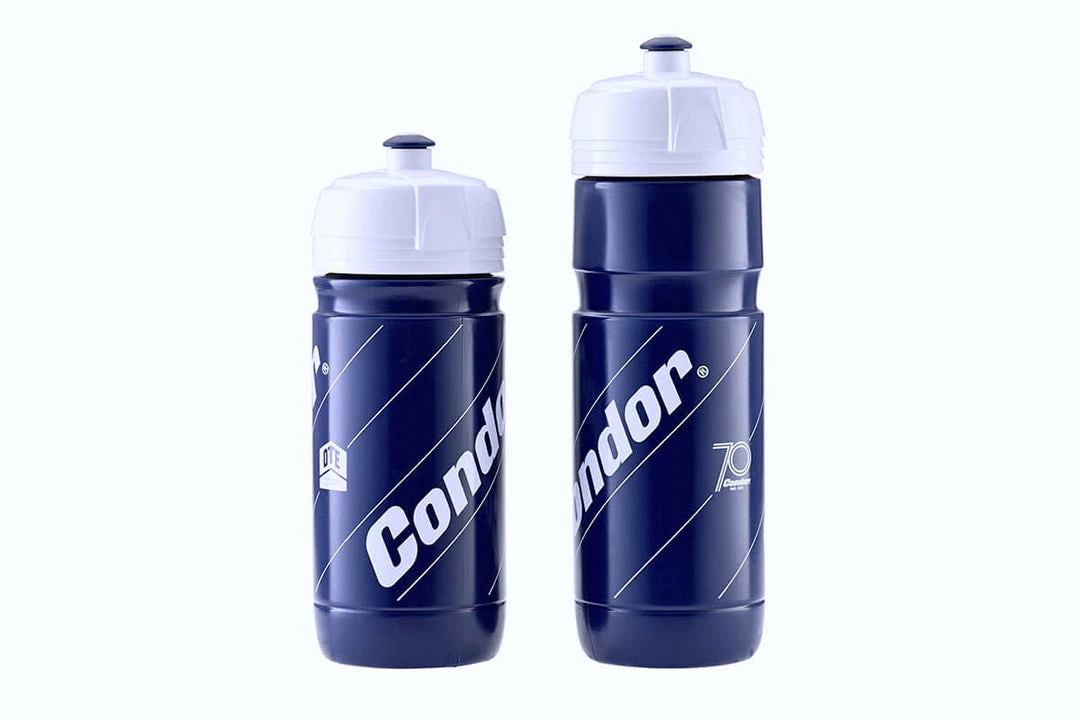 Our anniversary bottles celebrate our historic 70 year milestone and seven decades of creating bicycles by hand. The bottles are lightweight, feature a wide neck, and are constructed from soft recycled plastic that doesn’t contain BPA to keep your hydration as pure as your power and odour-free. The bottles feature an ergonomic cap designed to increase flow to quench your thirst, and our 70th Anniversary logo to remind you that Condor remains by your side after 70 years.