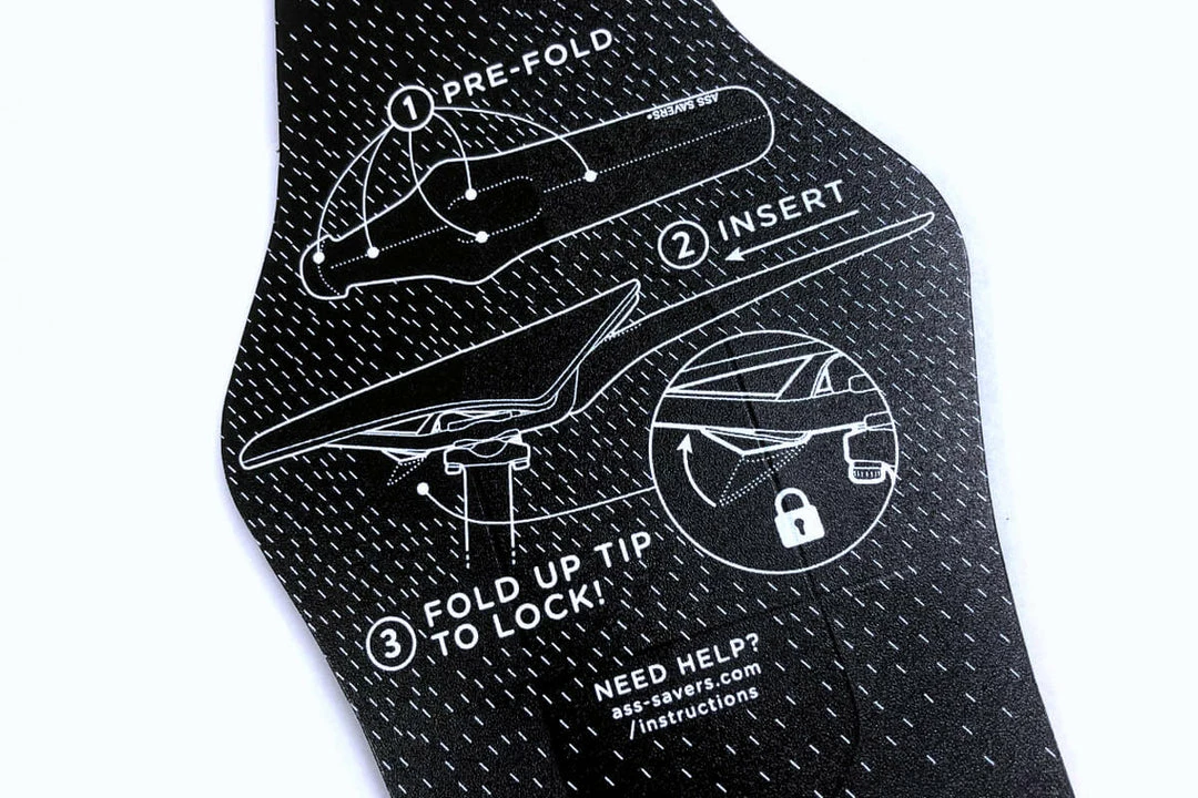 Whether you commute to work or race in the UCI World tour, the Ass Saver Regular will keep your butt dry and dramatically increase the comfort on cold and wet rides. The latest Ass Saver sports the new FLIP-TIP attachment system. Once fitted, simply fold up the tip of the Ass Saver and it will securely lock to the saddle rails.