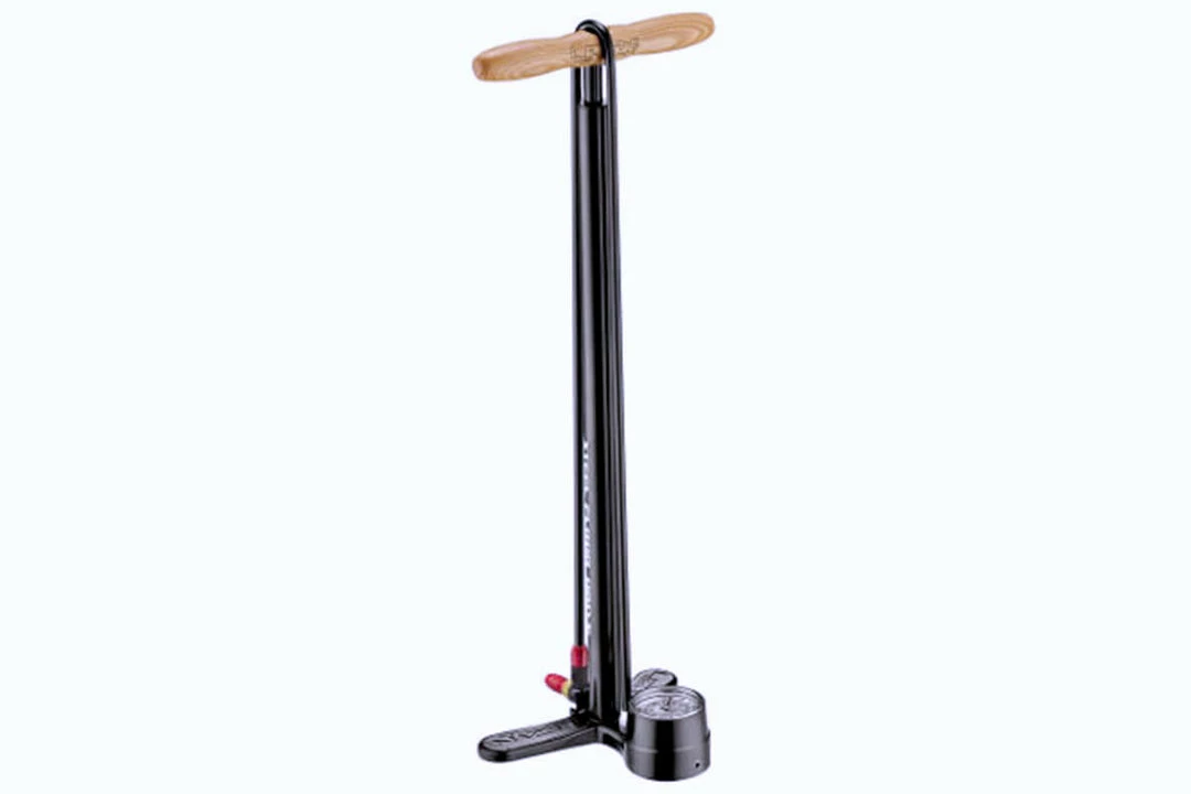 The Steel Floor Drive Pump from Lezyne offers super-efficient pumping with a comfortable feel in the hand. This is thanks to it being constructed with a strong steel for the barrel, an alloy base and a varnished wooden handle.