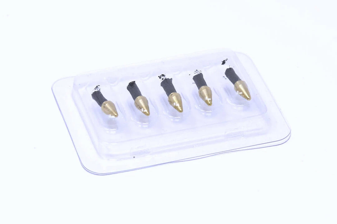 5-pack of Dynaplug soft nose brass tip repair plugs with a shorter tail for use in the road Air system.