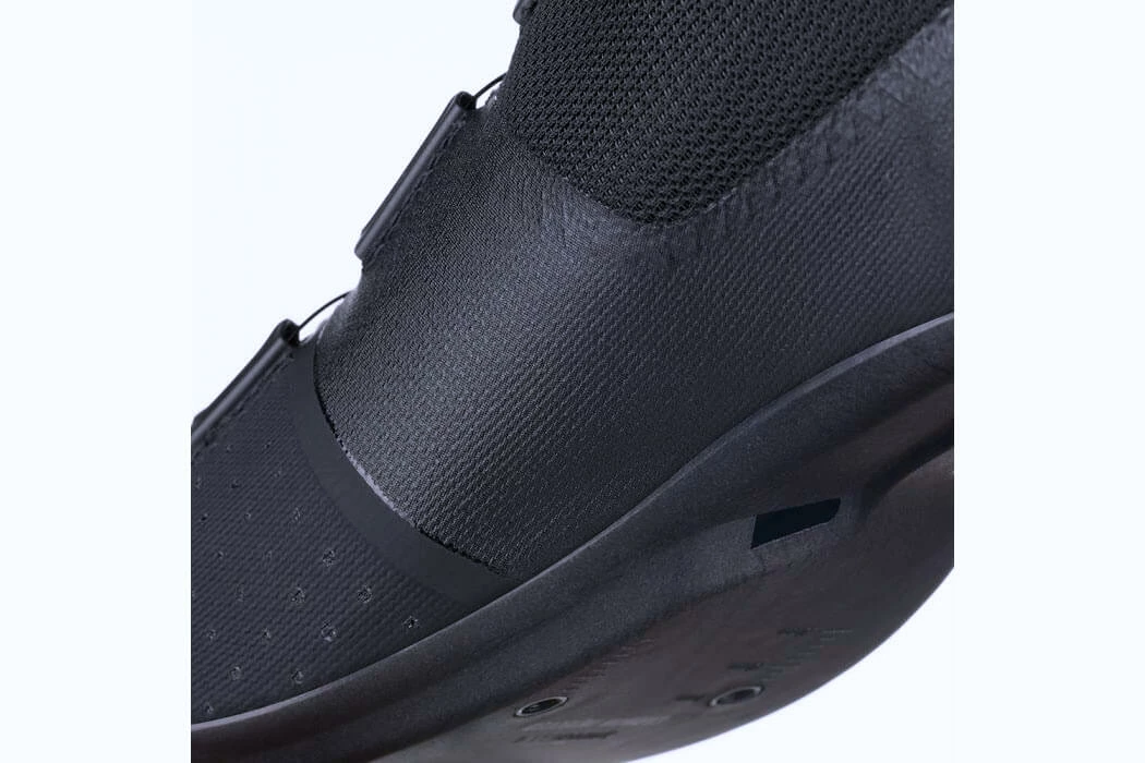 The Overcurve shoe construction features a staggered collar that wraps around the ankle, tracing the natural misalignment of the ankle’s two bony protrusions: the lateral and medial malleoli. The result is an asymmetrical shape, with the throat of the shoe curving over the foot from its outside to its inner side. The closure is fast and secure, with a single micro-adjustable Boa® IP1-B dial. The new, moderately stiff, R4 outsole – with 15% infused carbon fibre – strikes a balance between comfort and pedalling efficiency to make it a true all-rounder. It also provides efficient ventilation and internal channelling for temperature management and features cleat positioning well suited to aggressive, aero positions.
