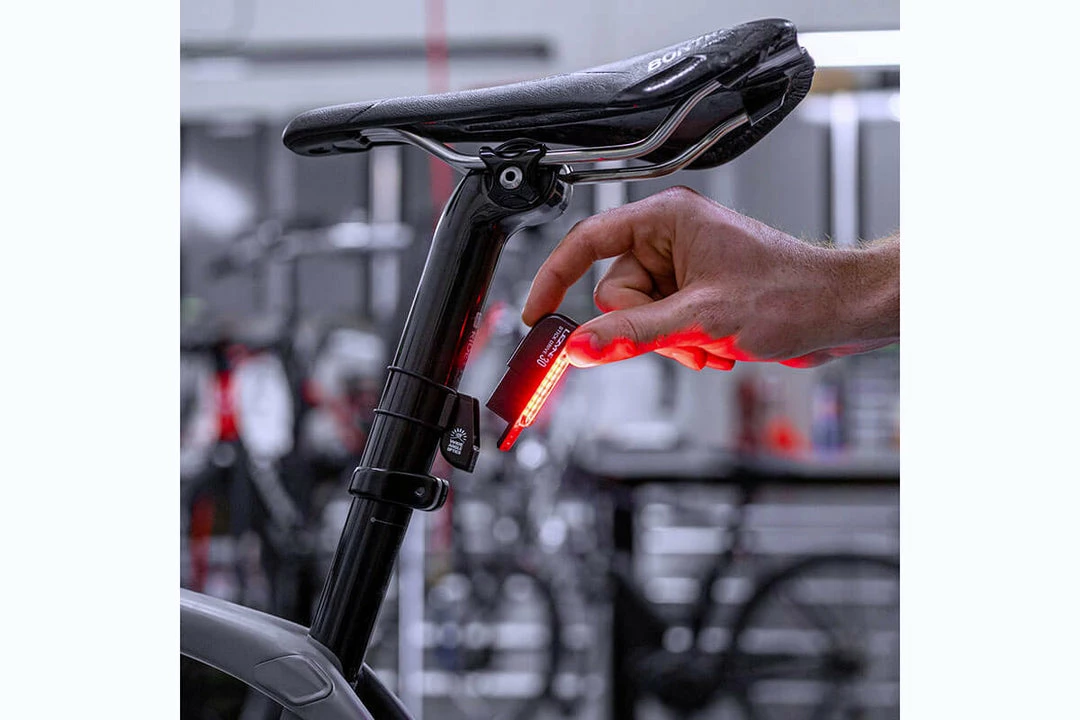 Its minimalistic design is optimized for versatility and ease of use. A simple o-ring securely straps it to a bicycle seatpost, and an innovative magnetic attachment separates the light from the mount for quick charging accessibility. It’s equipped with an integrated USB stick for cable-free charging, providing up to an impressive 23 hours of runtime.