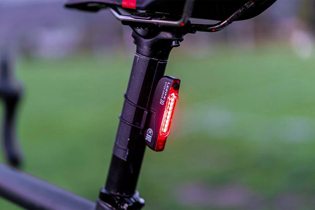 The Wide Angle Optics lens creates up to 270° of visibility, and the light outputs up to 30 lumens – this includes a disruptive Daytime Flash feature among its seven modes. With its narrow design and compact mount, the Stick Drive is the perfect taillight for maintaining aerodynamics and also attaching to seatposts with minimal space – like a dropper post. Designed and produced in-house, the Stick Drive is engineered for long lasting durability and built to be highly water resistant.