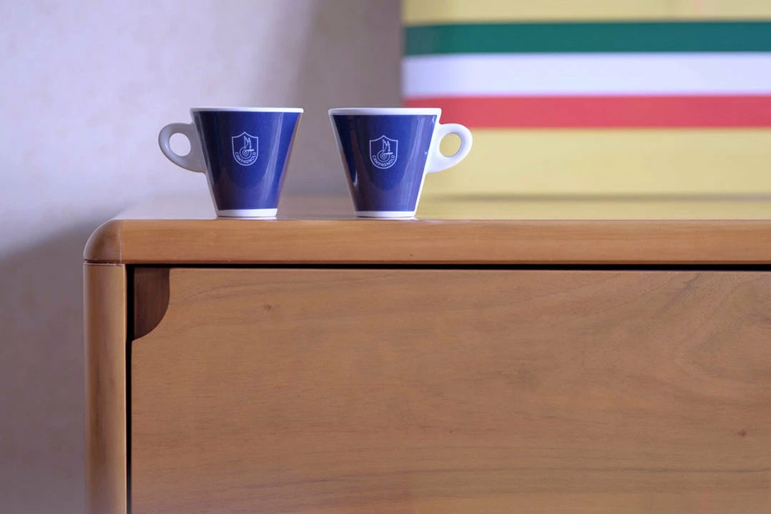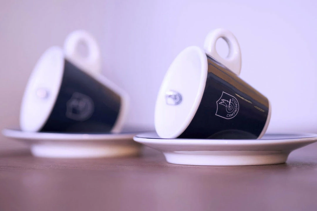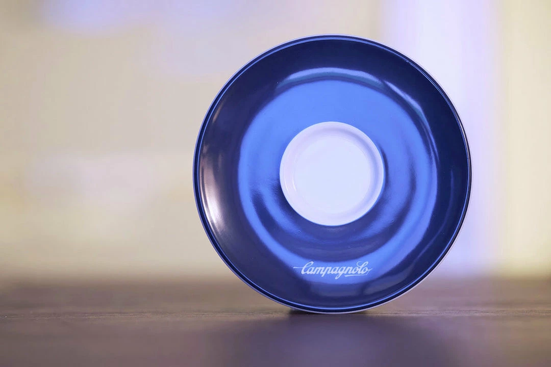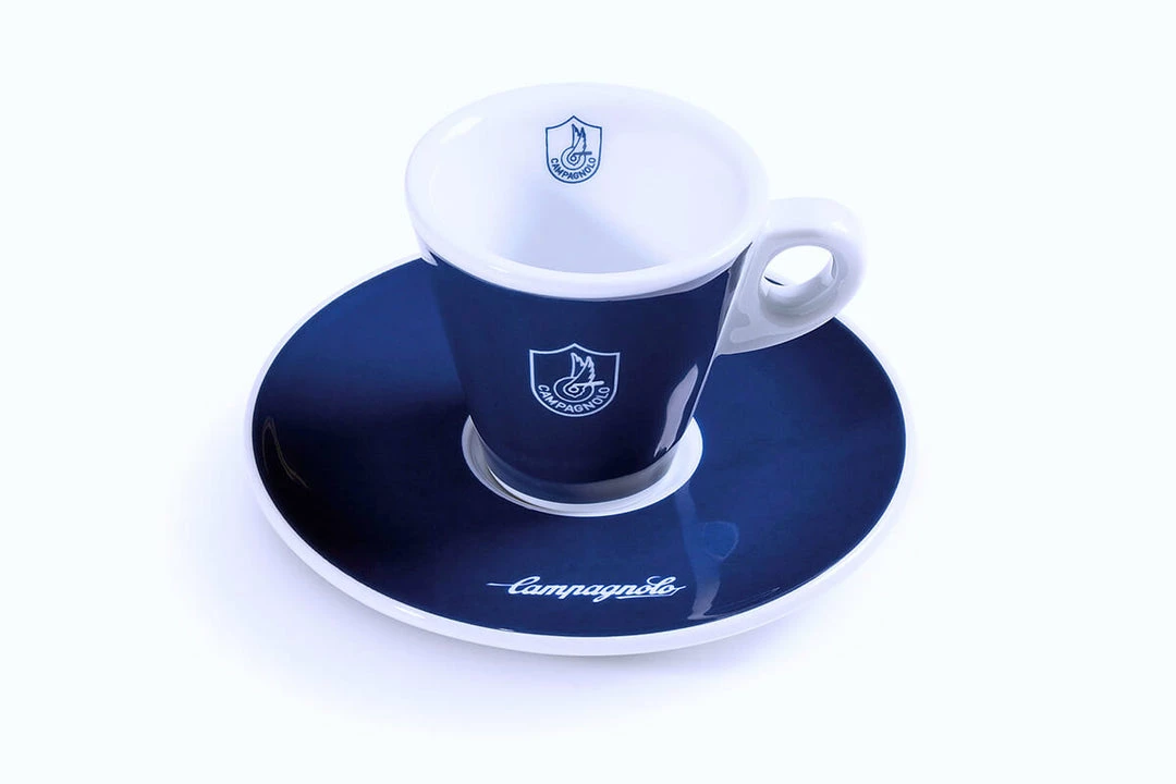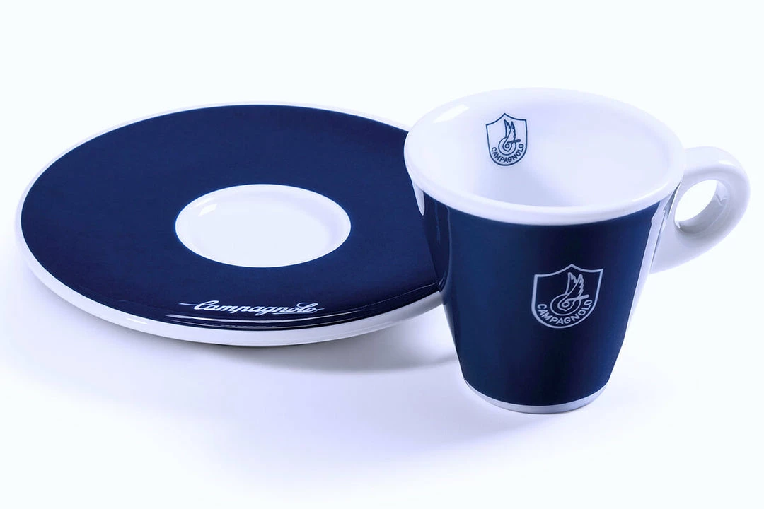 The Campagnolo espresso cups combine two of the most characteristic elements of the Italian culture: cycling and coffee.