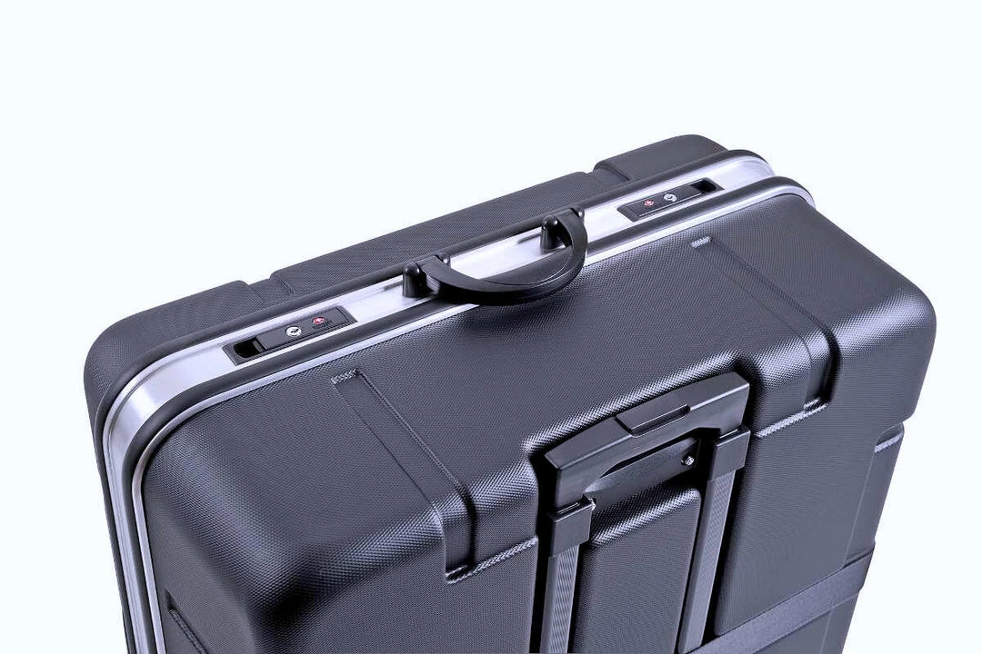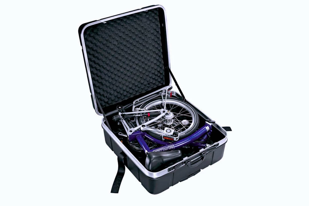 Now with TSA locks! The B&W Foldon bike case fits any Brompton model. Its tough outer shell protects your bike, whilst the interior foam protects it further. It features a telescopic handle and wheels to make travelling easy.
