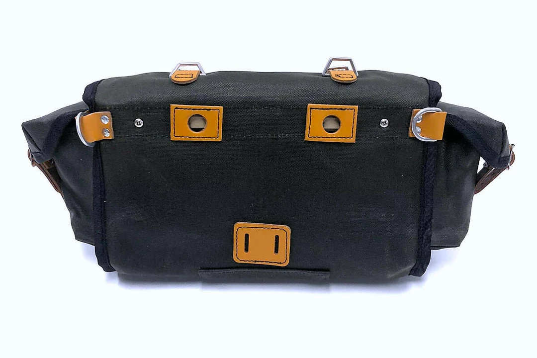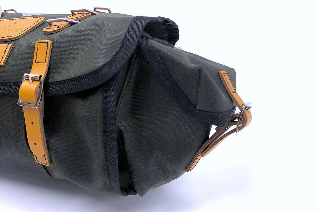 The Barley bag is constructed of a 100% waterproof 18oz waxed cotton duck and hand made in the UK using high quality materials and features 6 metal D ring strapping points on lid for fixing a cape or jacket and 2 handy pockets for organising kit.