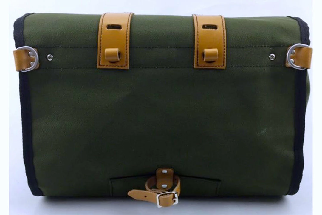 This saddlebag is the same size as the Nelson saddlebag but without the external pockets. It has leather patches on the lined lid so that extra loads can be lashed on. Use it with a Bagman Expedition saddlebag support to really finish off the look and experience.