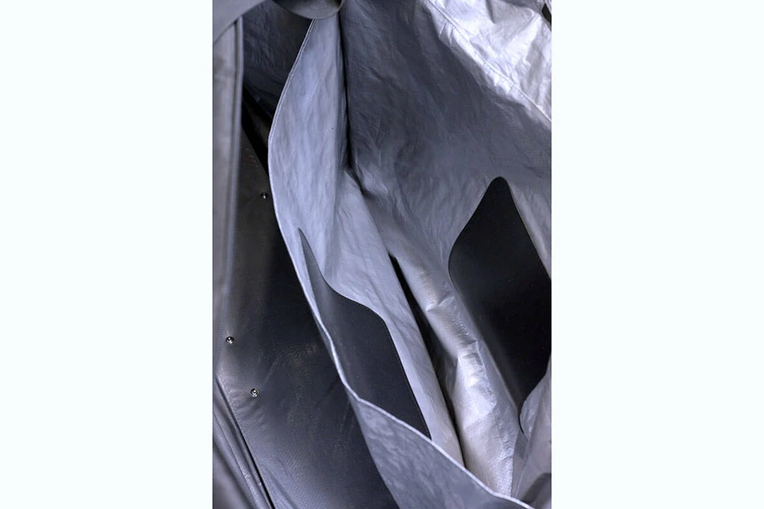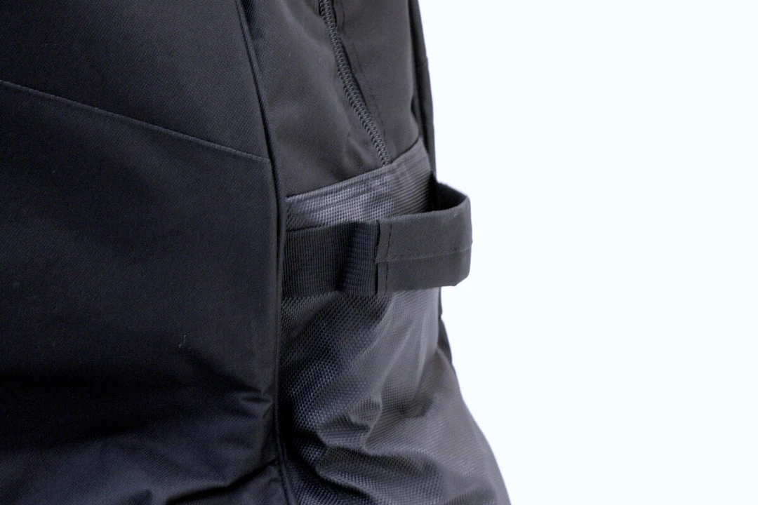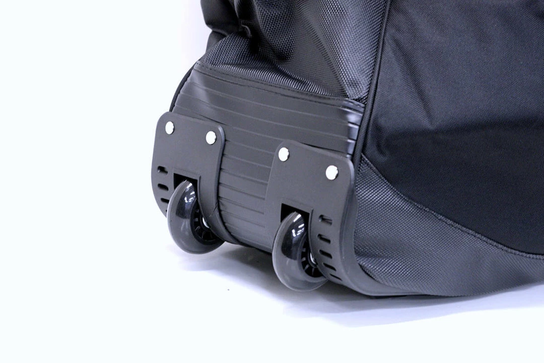 It’s made of a durable rain resistant nylon outer material with large internal wheel pockets that also feature rubberised sections to protect your wheel axles. There are skate wheels, handle loops and a shoulder strap to let you move the bag around with ease. The base is double re-inforced, and there’s a burly zipper along the top which you can attach an additional lock to.