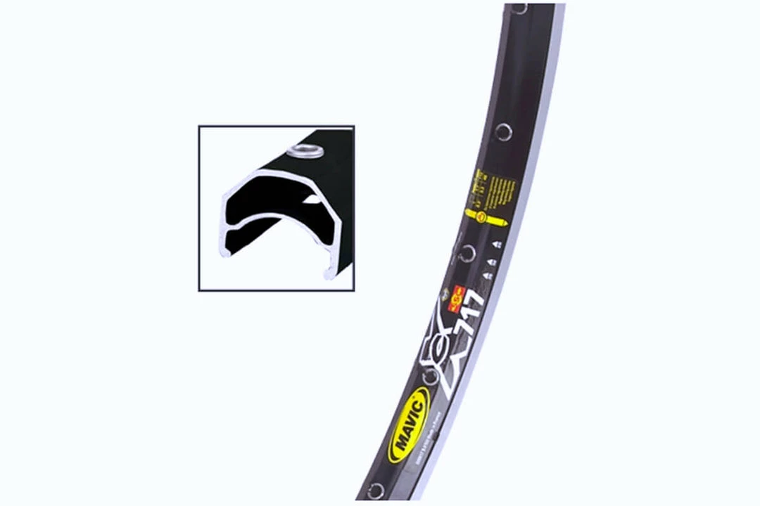 The rim utilizes Maxtal a specific Mavic 6000 series aluminium which is 30 percent stronger than an equal weight 6106 aluminium rim. Hammer hardening local strengthening of the rim or H2 technology, improves the life expectancy and resistance to micro cracking.